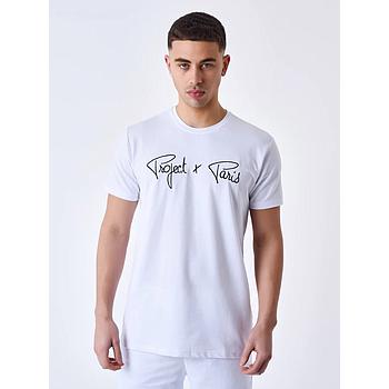Camiseta Project x Paris con diseño circular bordado en el pecho. Tiene ciertos detalles en la parte trasera y la manga de la camiseta posee un bolsillo. Esta camiseta es original, cómoda y elegante. Por lo que proporciona versatilidad para combinar con distintos estilos y outfits.